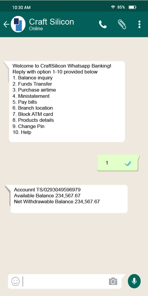 Easy to use. By simply typing ‘balance’ or ‘statement’ the customer can have a request answered, within a chat environment